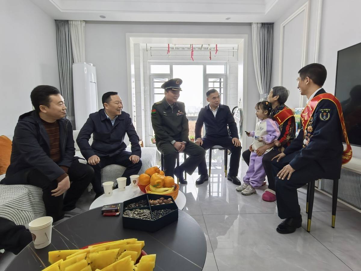 当天,随州市曾都区北郊街道桃园社区锣鼓喧天,由曾都区政府、区人武部、区退役军人事务局和北郊街道组成的慰问组,为荣获个人二等功的现役军人家庭送去立功喜报和慰问金,让军人军属共享这份荣耀与喜悦。