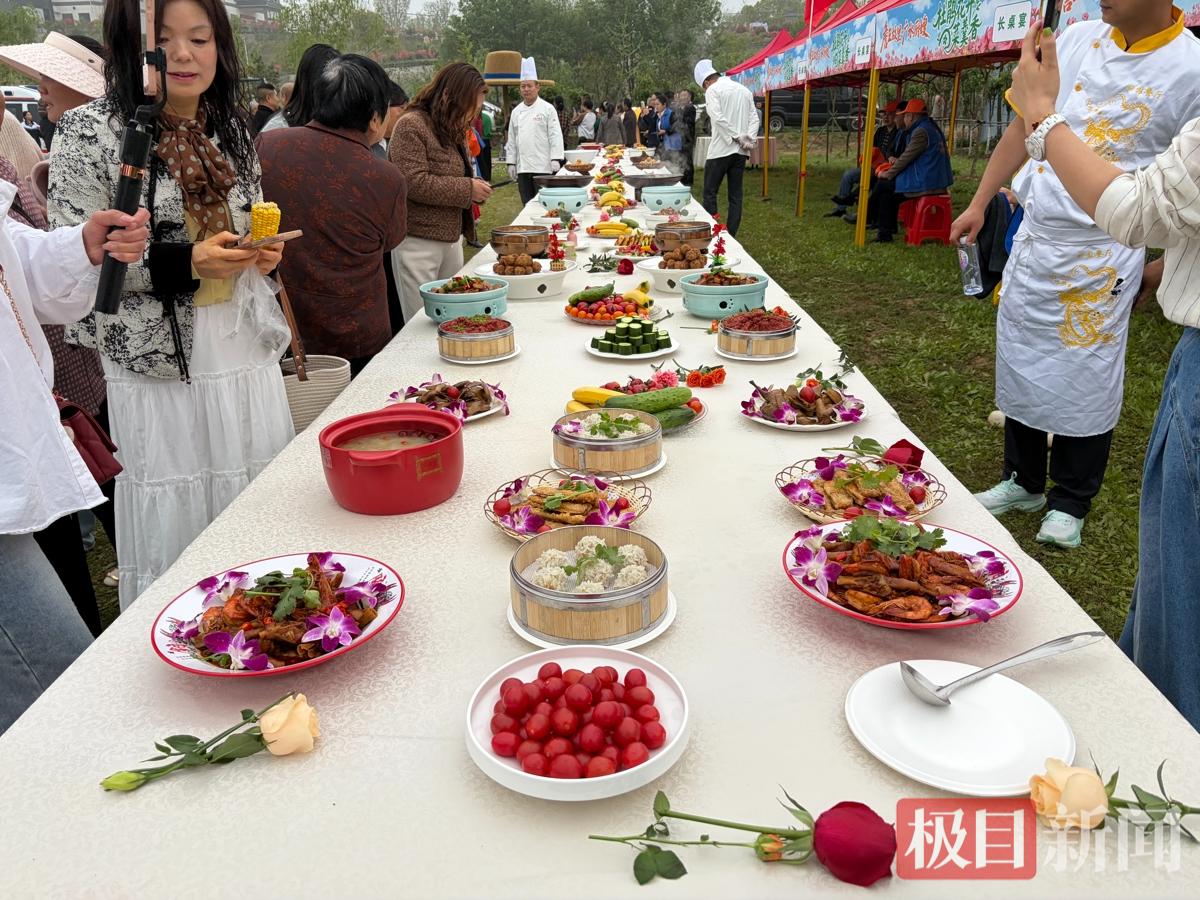 4月10日,春光明媚、杜鹃绽放,“詹王故里·广水厨嫂”杜鹃花开菜羹香活动在湖北广水市蔡河镇老虎岗村举行。