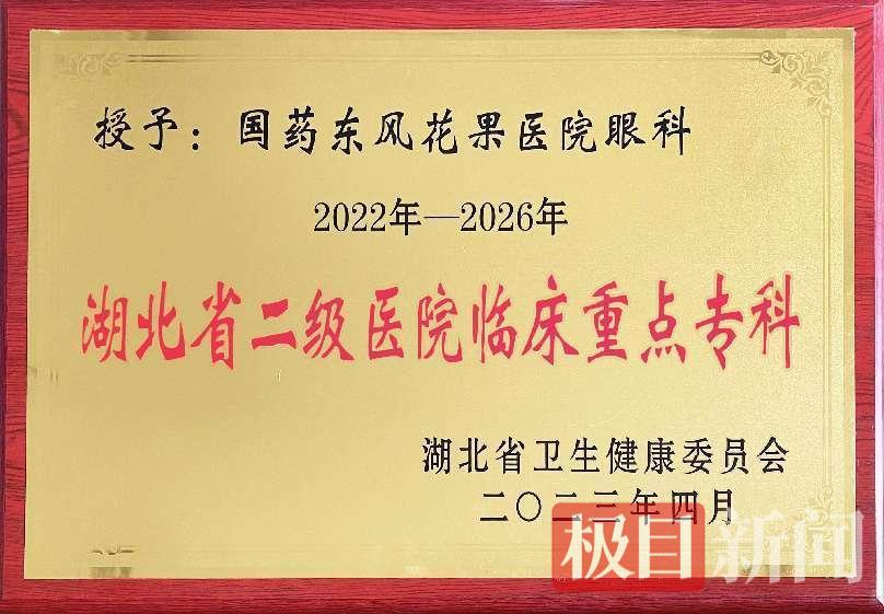 国药东风花果医院眼科是湖北省二级医院临床重点专科,擅长白内障、青光眼、眼底病等眼病的诊断与治疗,尤其精于白内障超声乳化吸除联合人工晶体植入术。作为十堰市“白内障复明工程”定点单位,该科自2006年起持续救助贫困白内障患者,曾成功为107岁高龄老人实施白内障手术。