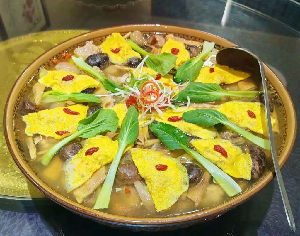 必嗦郧阳三合汤,暖身又顶饱;酸浆面,酸辣开胃一口入魂;竹溪蒸盆鲜到舔盆,丹江口鱼嫩到犯规。房县小花菇鲜到爆,看球前炫一碗,呐喊都更有劲儿!再来碗神仙叶凉粉清清爽爽,山珍小吃轮番上阵,烟火气直接拉满!