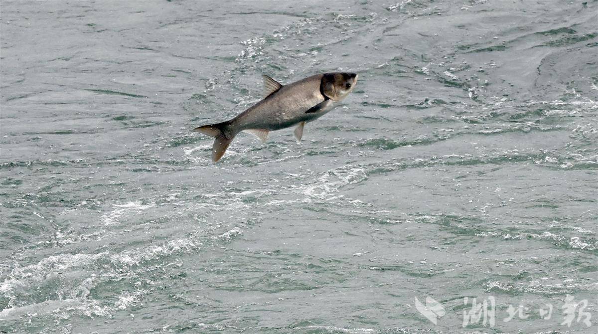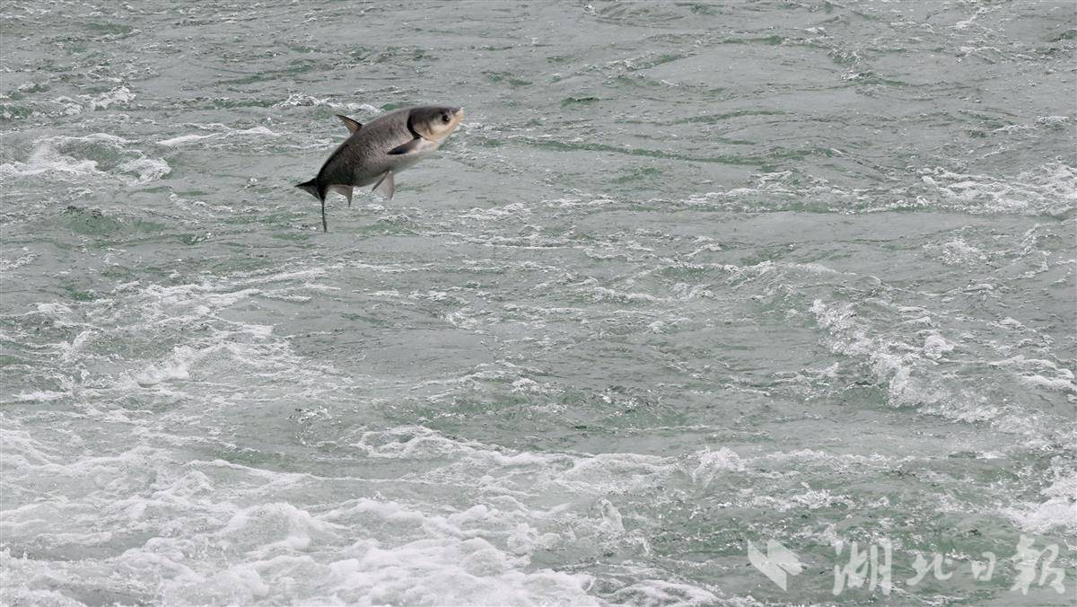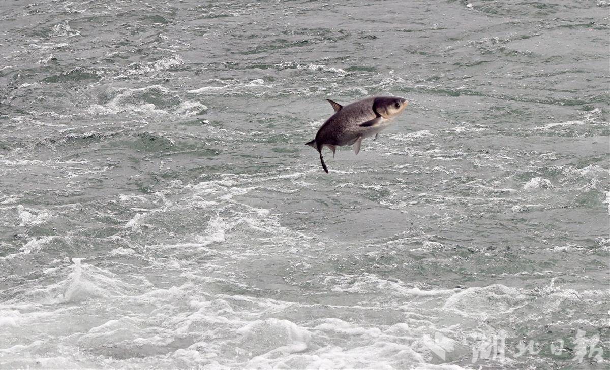 春季鱼类繁殖期,西坝水域水流湍急、饵料充足,江鲢等鱼群逆水洄游、频频跃水,搭配江豚逐浪的生态盛景,吸引众多摄影爱好者、市民前来观赏拍摄。宜昌江段水质持续改善、水生生物资源稳步恢复,“水清鱼丰”从愿景变为可感可及的城市风景。(湖北日报全媒记者刘曙松摄)