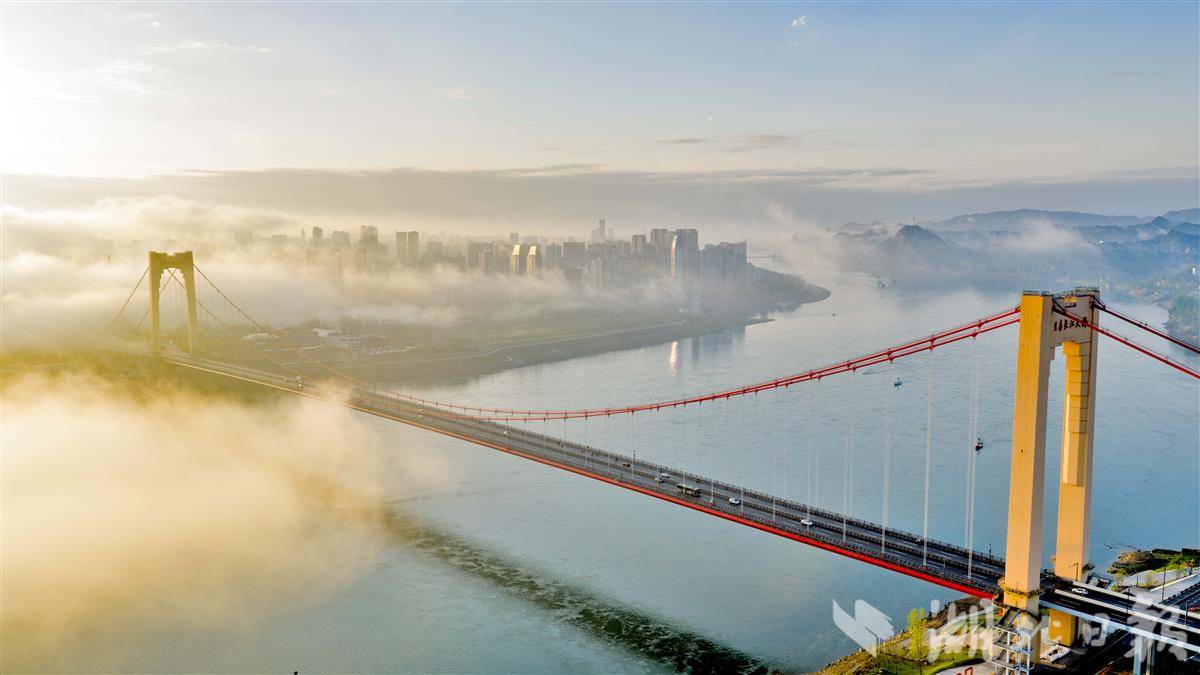 雨后宜昌云雾绕,至喜大桥若隐若现。