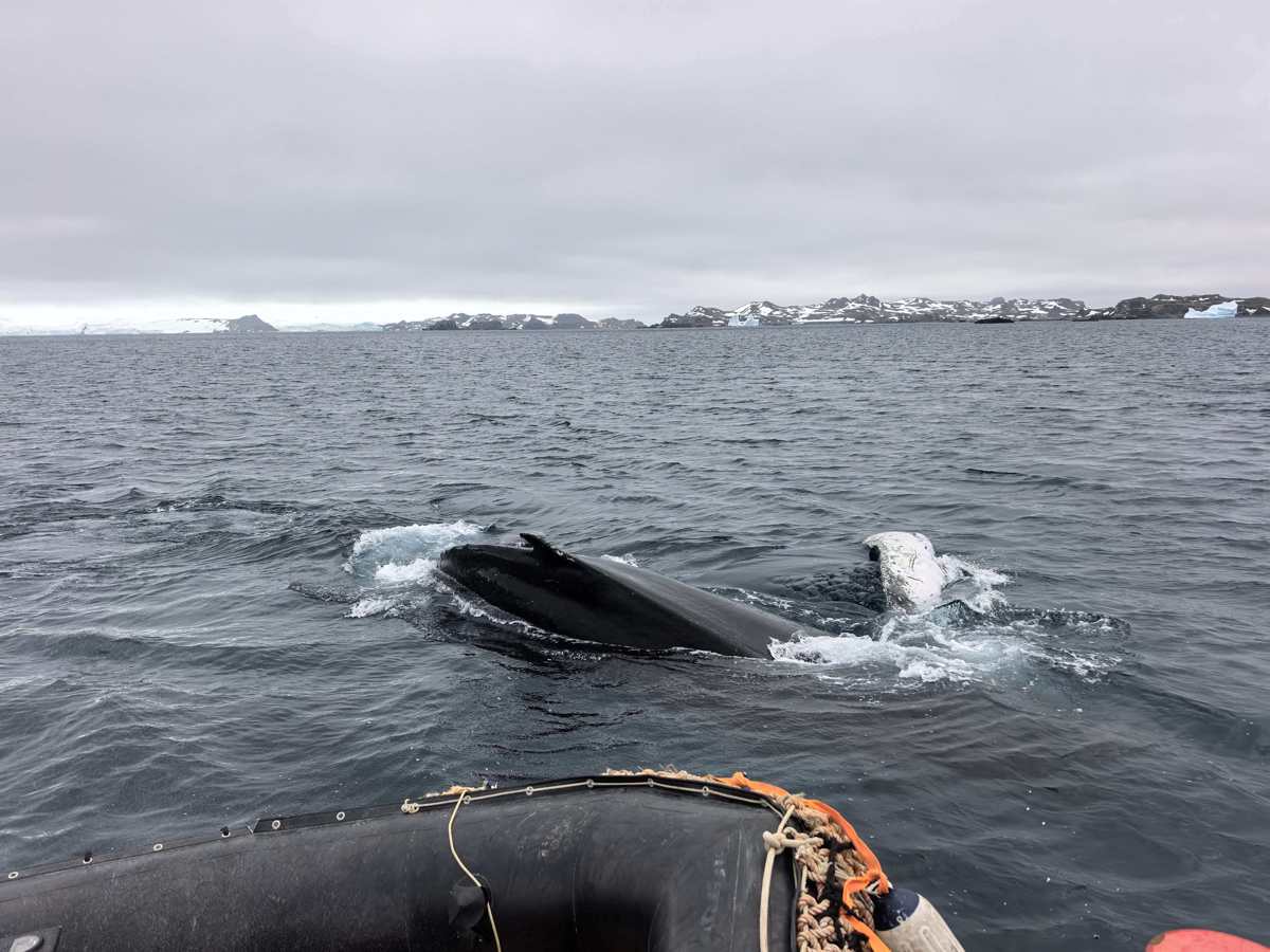 一只鲸鱼撞上科考队的皮划艇