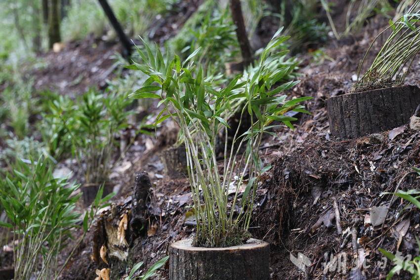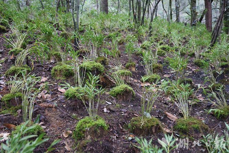 依托庭院种植积累的成功经验,在村两委的带领下,村民们利用丰富的山林资源,发展林下木桩石斛种植。村民黄发高就是发展石斛“林下种植”的村民之一,眼下正在林间忙碌着种下今年的第一批石斛。