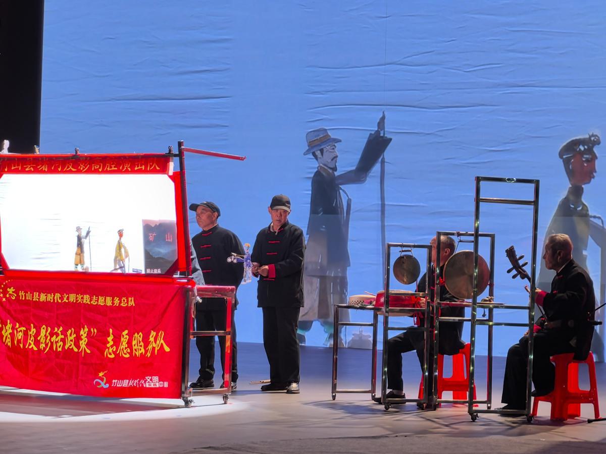 当天,由竹山县新时代文明实践志愿服务总队和“堵河皮影话政策”志愿服务队带来的原创皮影戏《石光魅影》,在2026年十堰市“4·15”全民国家安全教育日文艺展演上第三个登场。老艺人们双手翻飞,用竹山高腔唱起了“资金安全、电网安全、矿山安全”这些新词儿,台下一片叫好。