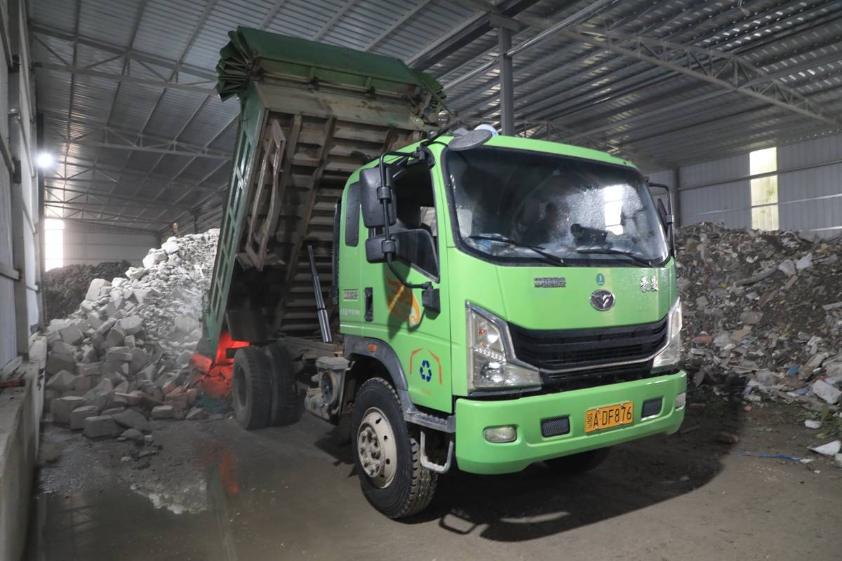 在清运环节,50余台统一标识、搭载北斗定位系统的清运车辆全天候作业,对辖区建筑垃圾实施精准收运、全程监控,有效杜绝沿途抛洒、随意倾倒等问题,从源头守住环境防线。走进7000余平方米的全封闭生产车间,隔音降尘设备高效运转,破碎、筛分、分拣等工序有序推进,曾经粉尘漫天的拆建废料,在这里开启了有序的“重生之旅”。