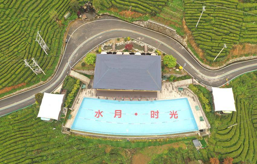 水月时光,隐在层层茶园深处。连绵梯田依山叠翠,如绿绸轻绕,一级级铺向天际,线条柔美如画,茶垄纵横错落,漫延成无边碧浪。阳光星空餐厅、共享厨房、儿童乐园、漫时光网红打卡点错落其间,构筑成全龄悠然的微度假之地。吊脚楼倚着茶浪而立,漫山碧绿随风起伏,茶香漫溢四野,天地间只剩一片清净与安然。目光所及,皆是诗意;呼吸之间,尽是清欢。