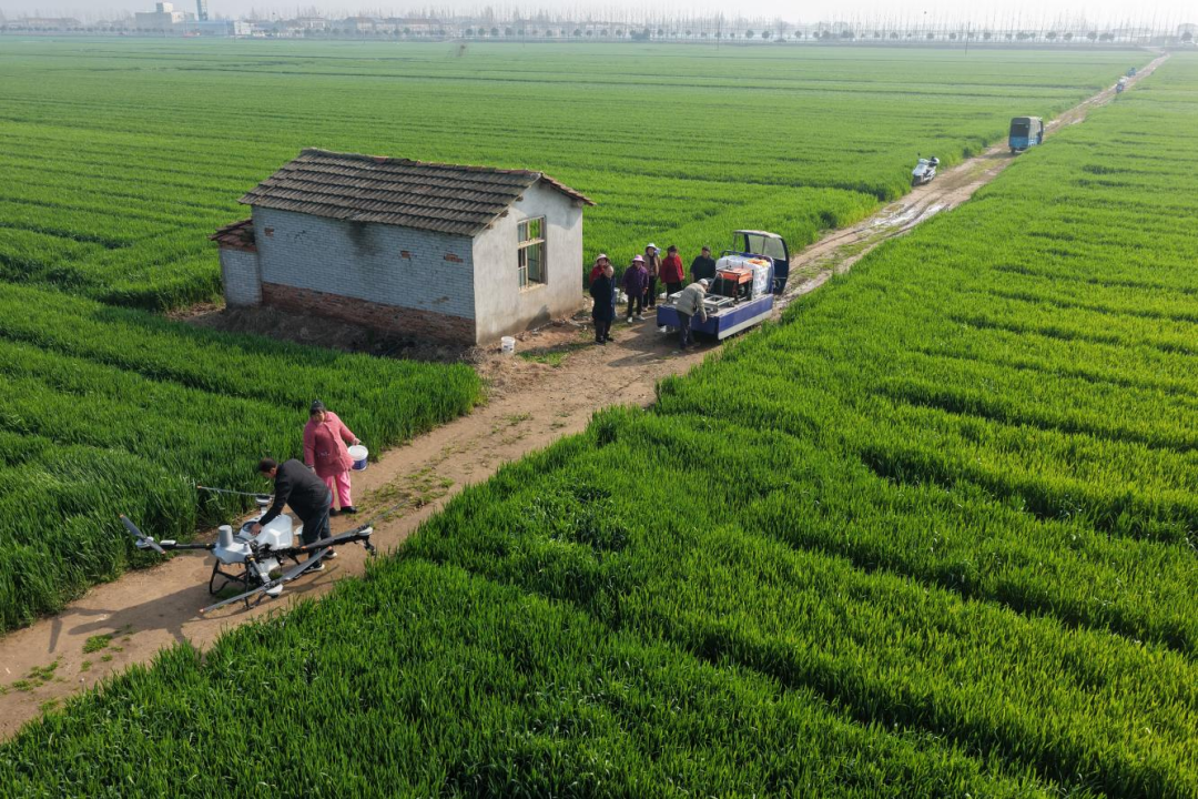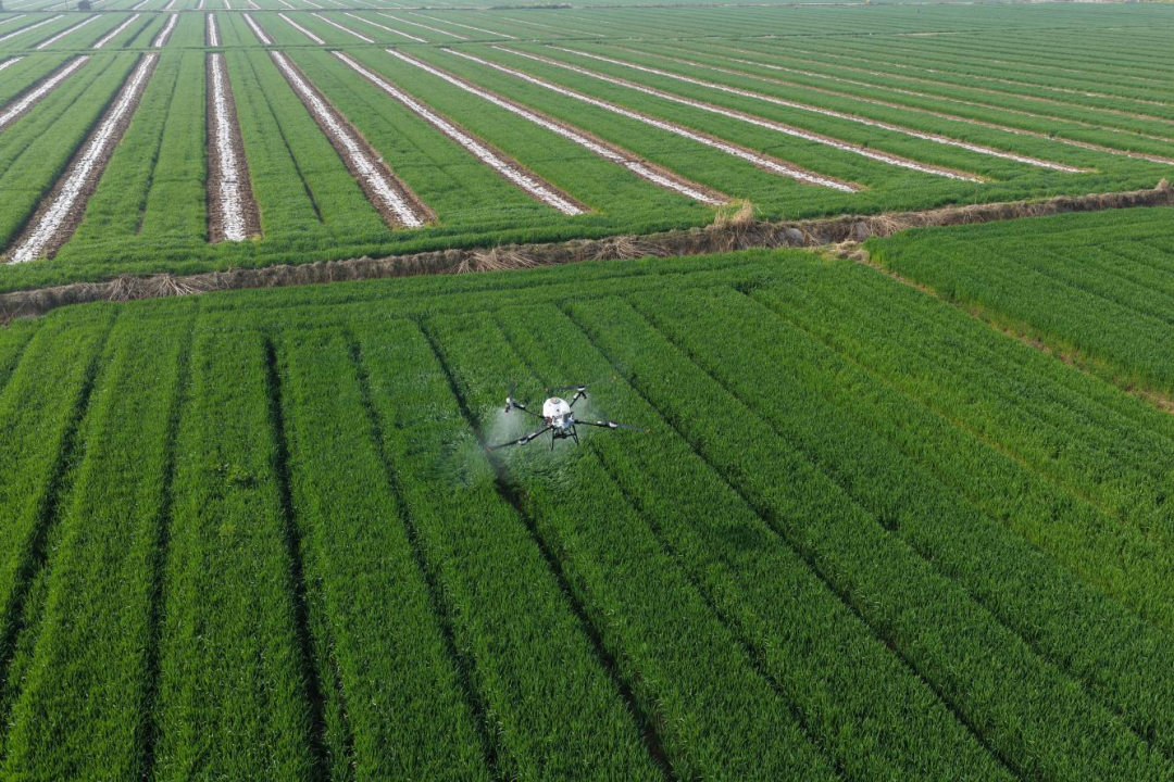 “以前种50亩地,全家老小齐上阵,忙得脚不沾地;现在有了无人机,一天就能忙活完,轻松多了!”在合兴村的高标准农田里,种粮大户汤师傅正操控无人机进行飞防防控。