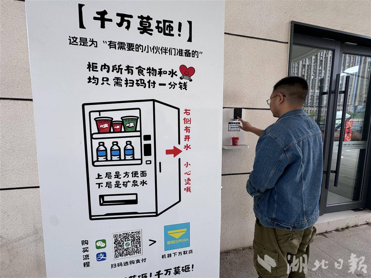 在武汉市汉阳区祈顺楼的铯卢咖啡烤肉店外,有一台公益自动售货机,可为需要帮助的人提供方便面和瓶装水,标价均为一分钱。