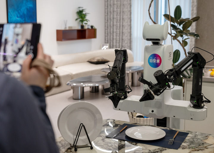 2026年3月27日,在广东省深圳市南山区,自变量机器人科技(深圳)有限公司开发的具身机器人在执行摆盘任务。新华社记者刘梦琪摄