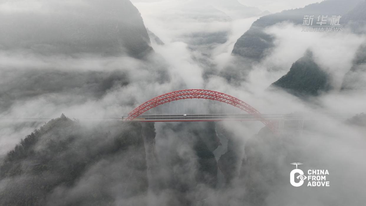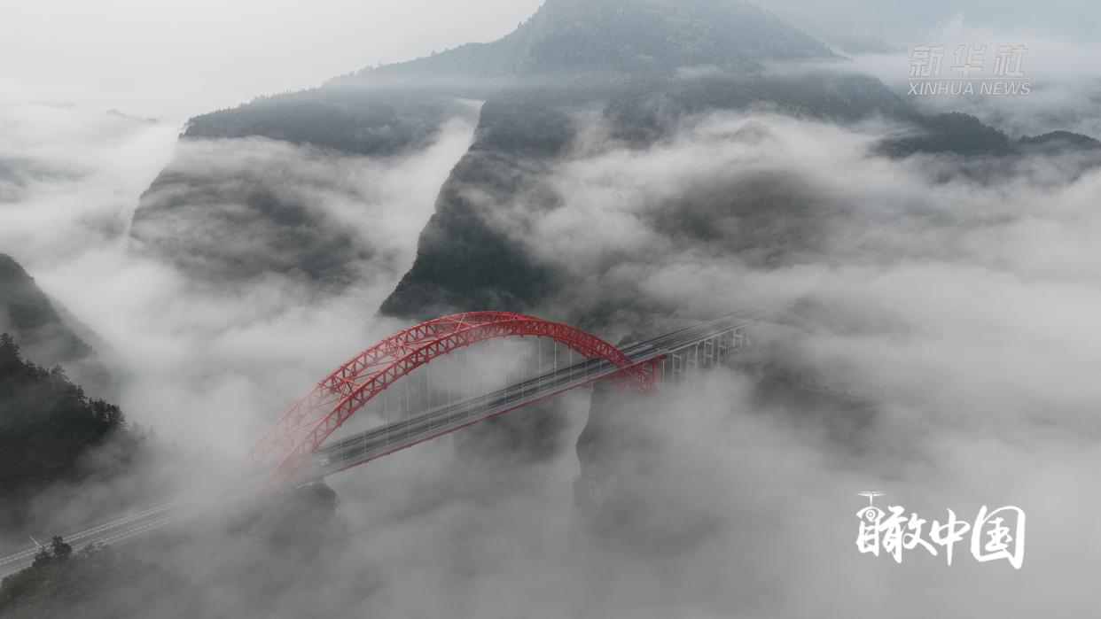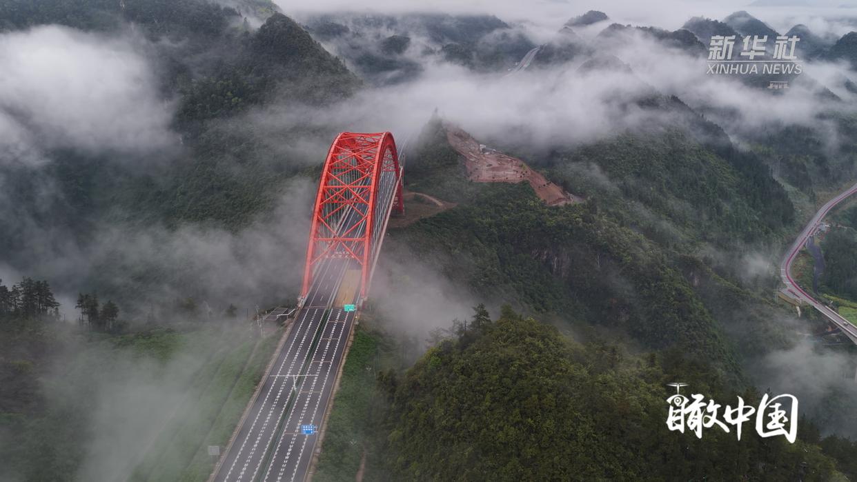 雨后初晴,云雾如轻纱般萦绕在鄂西武陵山区的群峰之间。地处湖北省恩施土家族苗族自治州鹤峰县的溇水河特大桥,在云雾中若隐若现,如一道绚丽彩虹横跨天际,将两岸青山紧密相连,完美勾勒出自然山水与现代建筑交相辉映的壮美画卷。