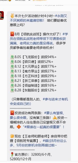 “他们不停地发那些高收益,还有限制名额、活动价格等来进行诱导,感觉没什么风险,再不跟上就吃亏了。”庄先生说,在业务员的不停夸大诱导宣传下,2025年8月30日晚,他向和信证券投资咨询股份有限公司郑州分公司缴纳服务费28506元,跟着去炒老师的专案票。