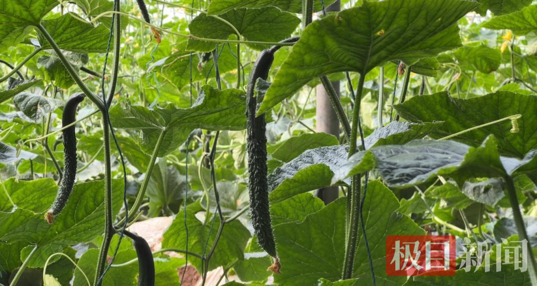 另一侧的黄瓜种植大棚内,片片绿叶将细长的小黄瓜隐藏其中,长势喜人。袁清怀介绍,有的黄瓜长达30厘米,番茄也是果肉饱满、酸甜多汁,产品除了在黄冈商超销售外,更多销往全国各地。