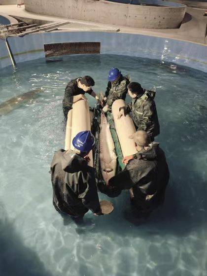 科研人员为中华鲟植入声呐标记。(受访单位供图)