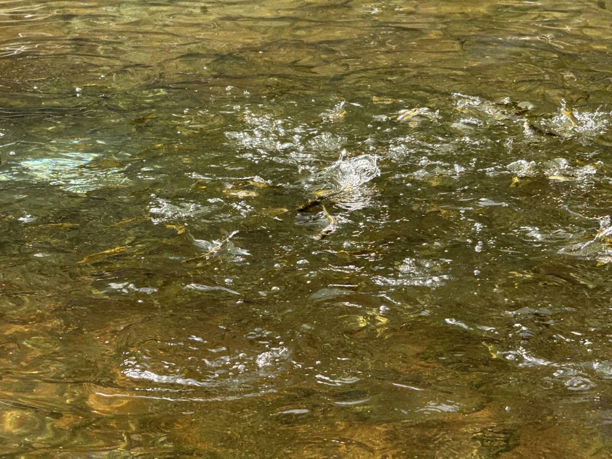 2025年,第一批钱鱼下池。抓起一把鱼食,抛洒入鱼池,平静的水面顿时浪花翻涌。