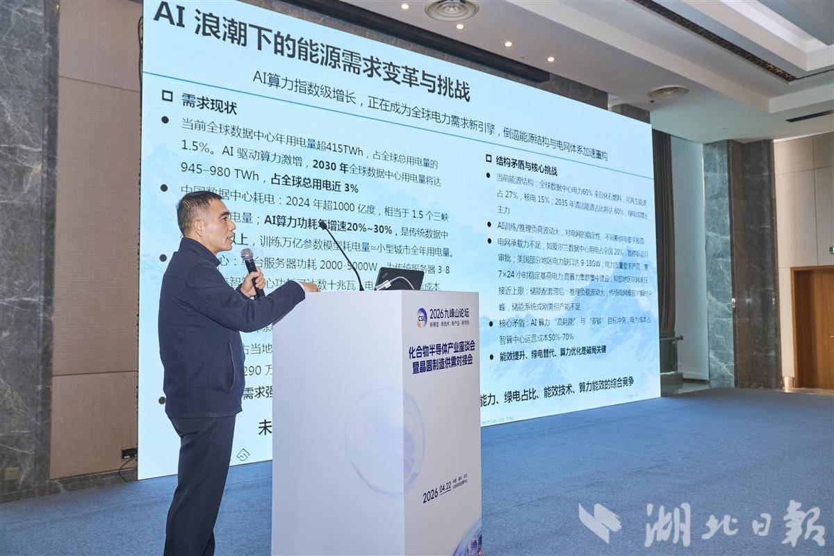 4月22日,2026九峰山论坛重点活动之一——化合物半导体产业座谈会暨晶圆制造供需对接会在武汉东湖高新区举行。瀚天天成、方正微电子等50余家重点企业代表齐聚一堂,围绕晶圆制造、材料供应、设备验证等关键环节深入交流。
