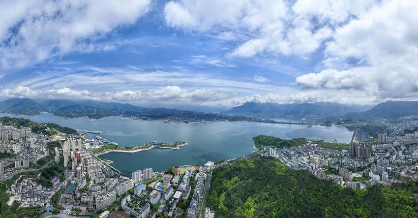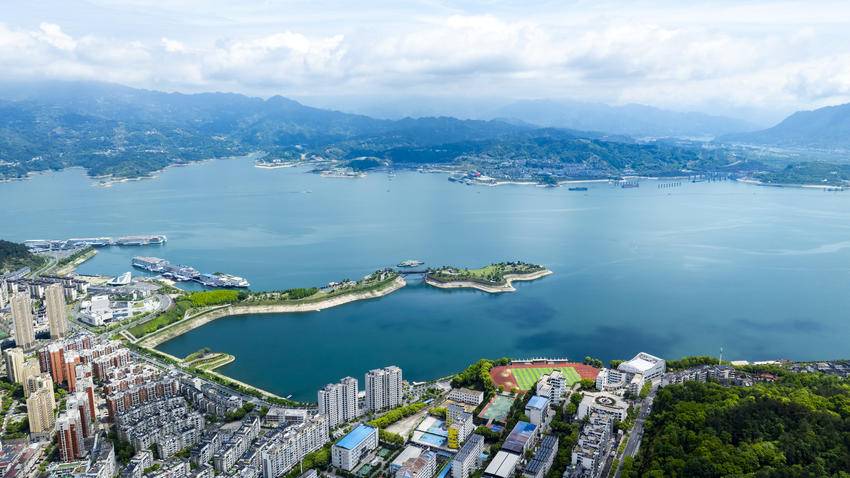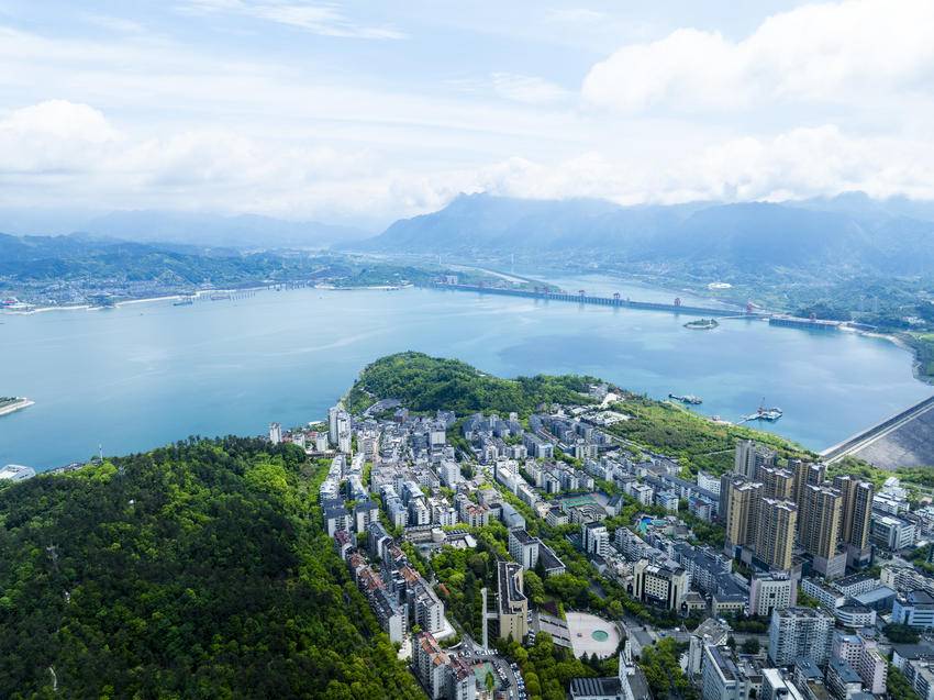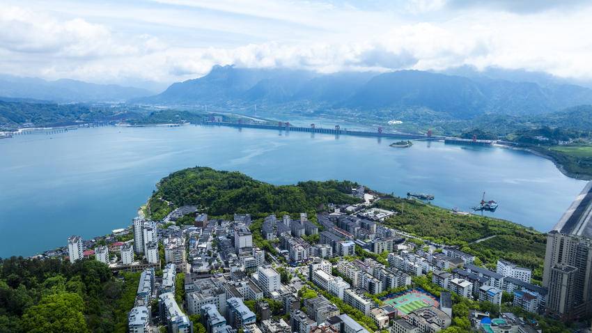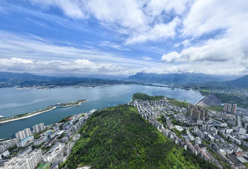 4月22日,第57个世界地球日,湖北省宜昌市秭归县雨后初霁。三峡库区云舒浪卷,碧水绕城,城景与江景相映成趣,勾勒出一幅人与自然和谐共生的生态画卷。