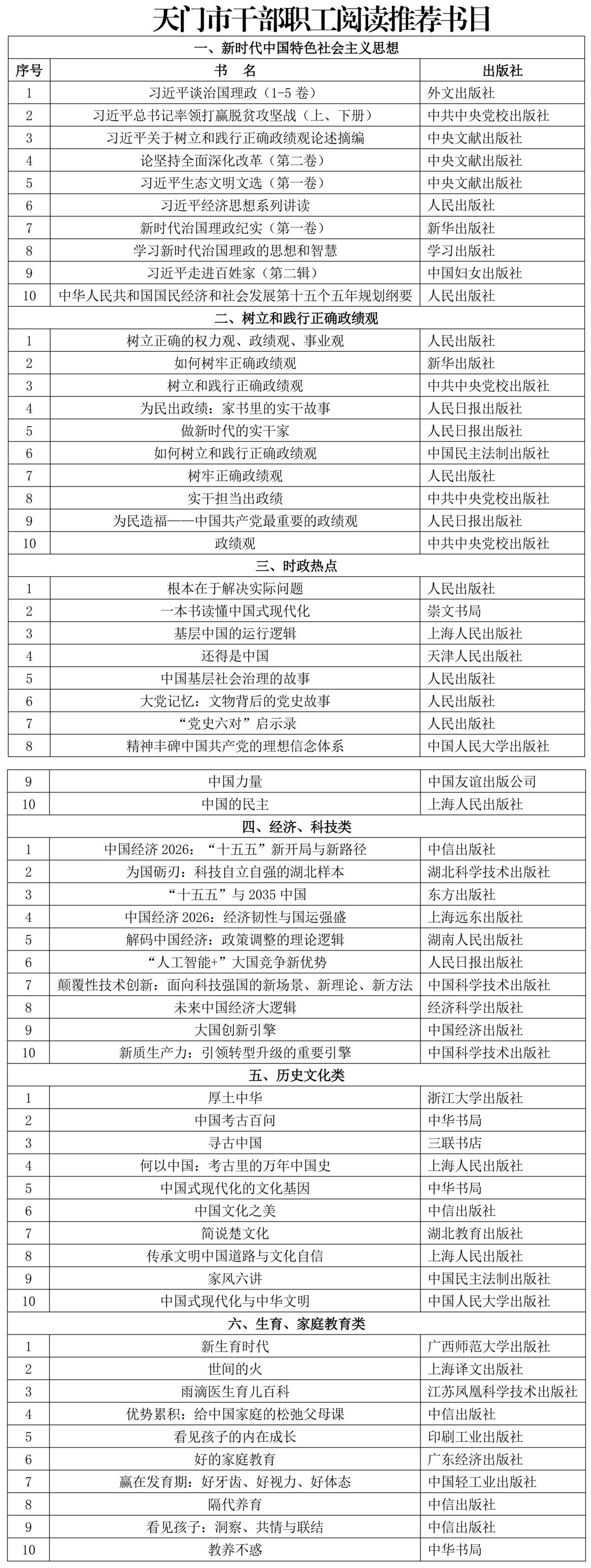 翻开给干部职工的书单,可谓“荤素搭配、营养均衡”:既有习近平新时代中国特色社会主义思想、树立和践行正确政绩观、时政热点等“思想主粮”,又有经济科技、历史文化、家庭教育等“特色菜肴”,覆盖工作生活的方方面面。