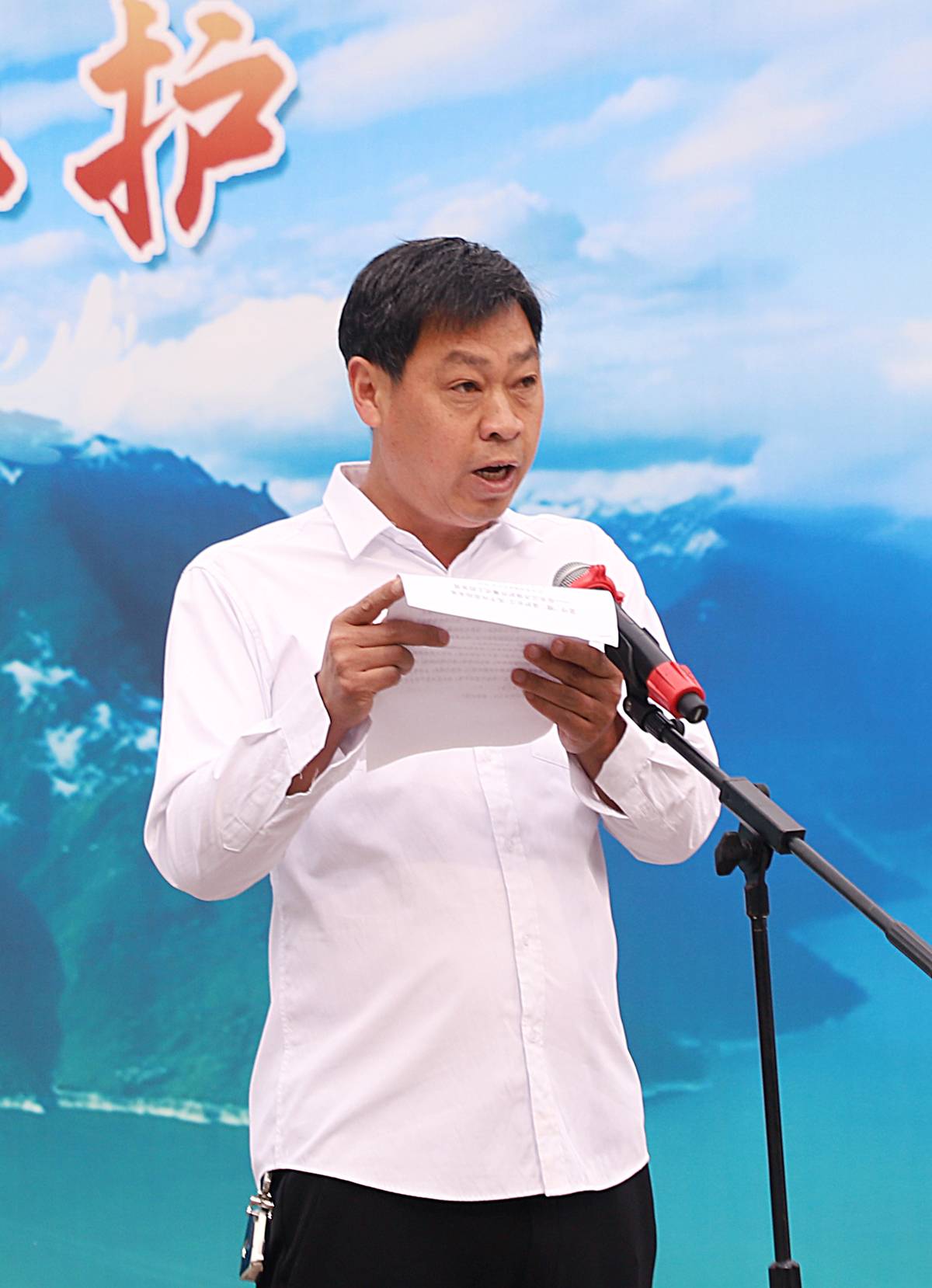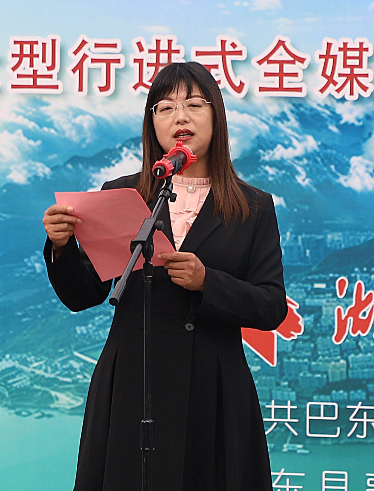 巴东县委副书记、县政府党组书记沈浩然向报道组记者代表授旗