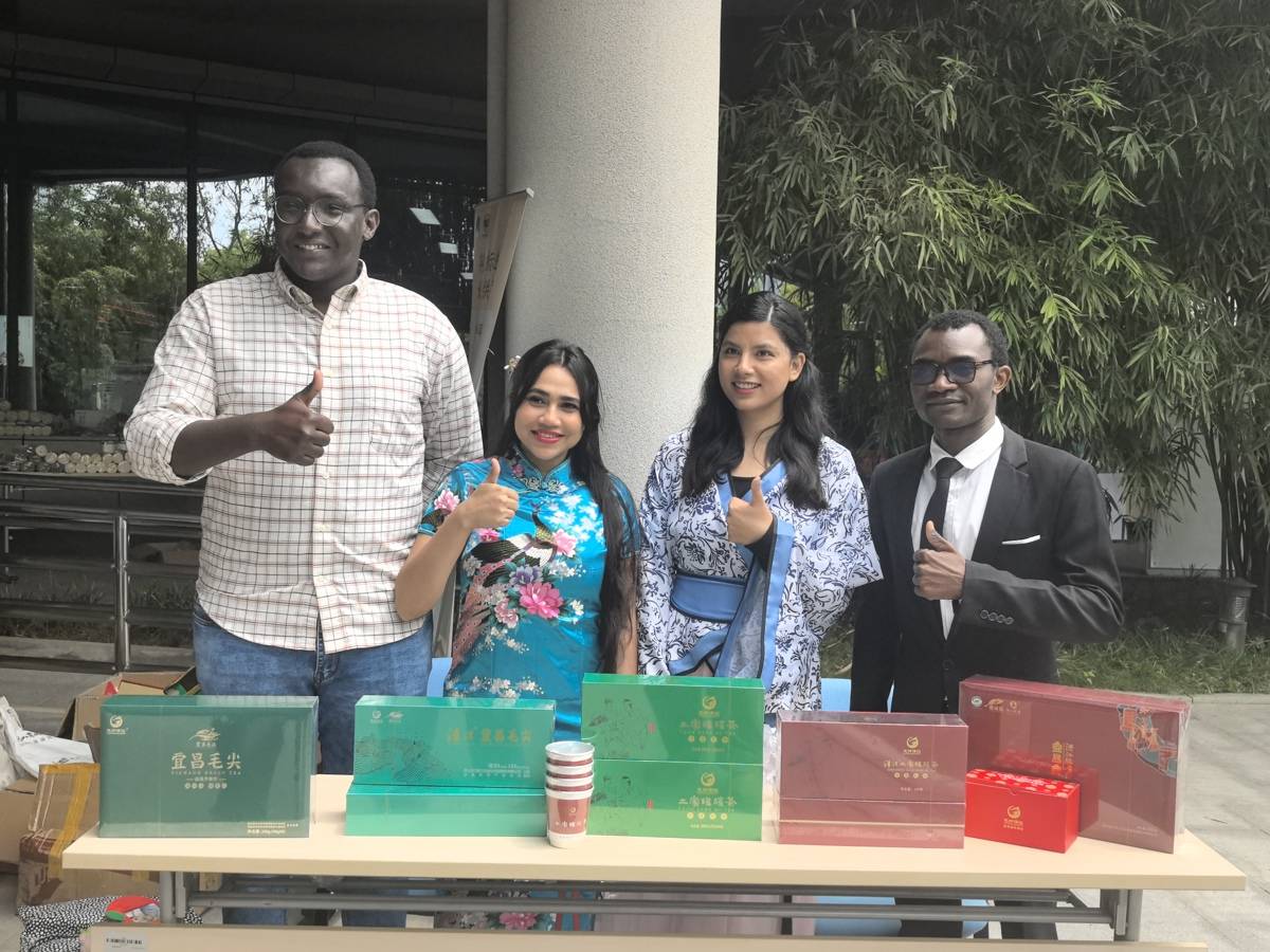 “长阳茶好!”活动现场,四位留学生围坐一桌,端起刚泡好的宜昌毛尖,品尝过后连连称赞,一口热茶打开了他们对湖北“民族优品”的第一印象。