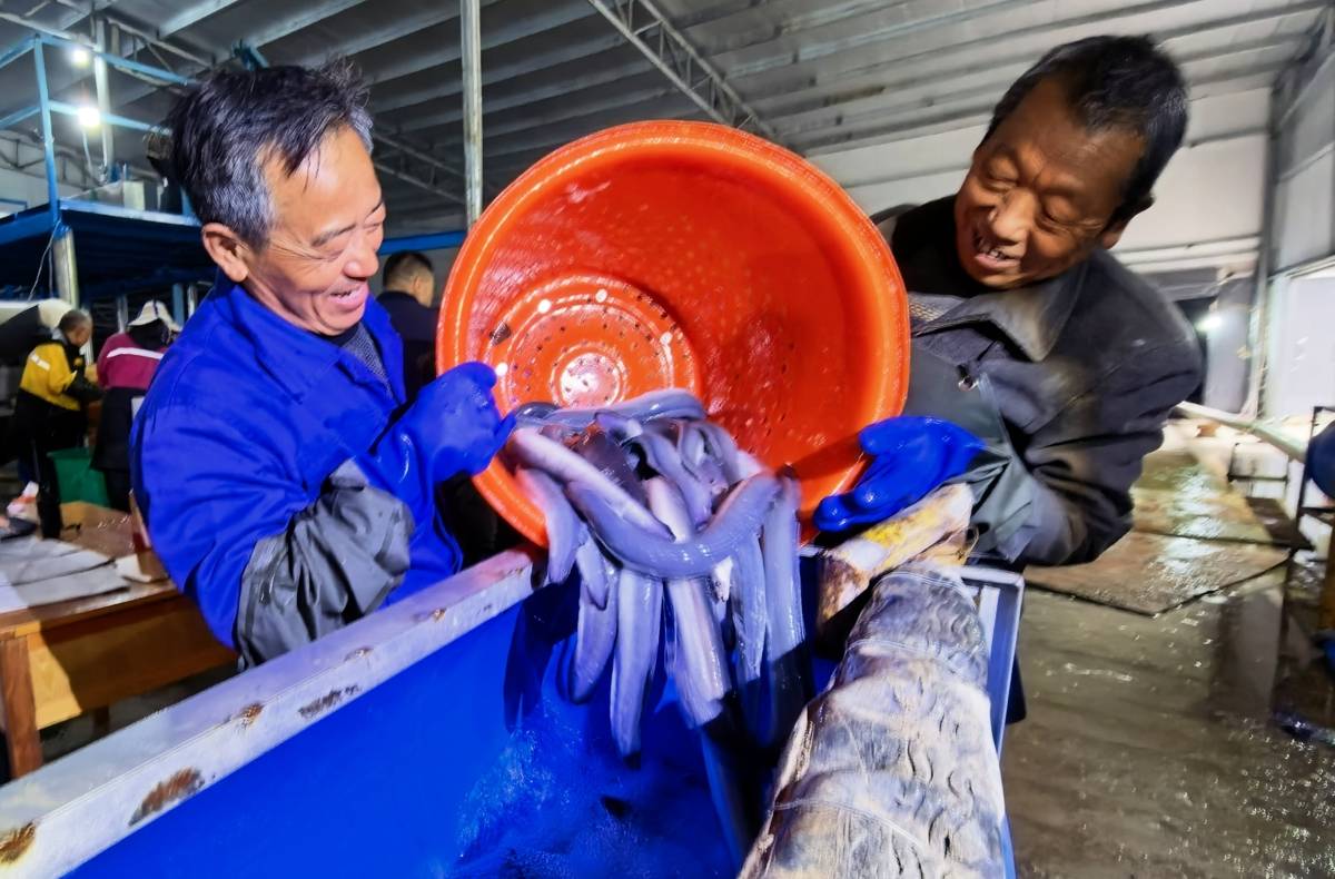 工人正在分拣鳗鱼。 (湖北日报通讯员 温宜飞 摄)