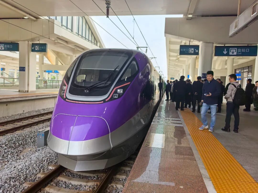 车厢内,建设者代表、市民代表等一同登车。“这车太空舱似的!”市民周攀感叹,车厢宽敞,空气清新。45分钟到咸宁,像坐未来地铁。”