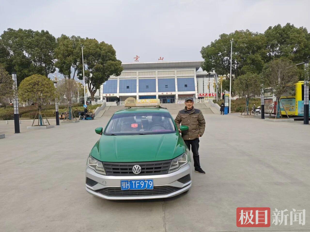 袁军波和他驾驶的鄂HTF979出租车