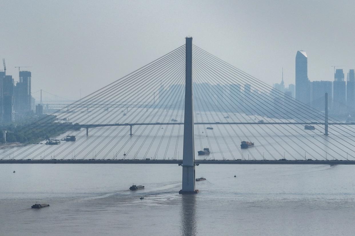 2025年7月29日,船舶行驶在长江武汉段(无人机照片)。新华社记者 肖艺九 摄