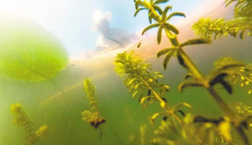 在洪湖底泥洗脱生态修复试验区,野菱、野莲、苦草、眼子菜等水生植物蓬勃生长,“水下森林”初具雏形。