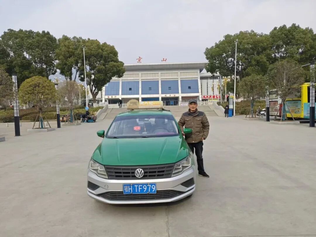 袁军波和他驾驶的鄂HTF979出租车