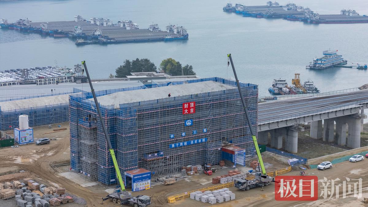 疏港铁路茅坪港站工地建设现场,信息中心已完成封顶作业