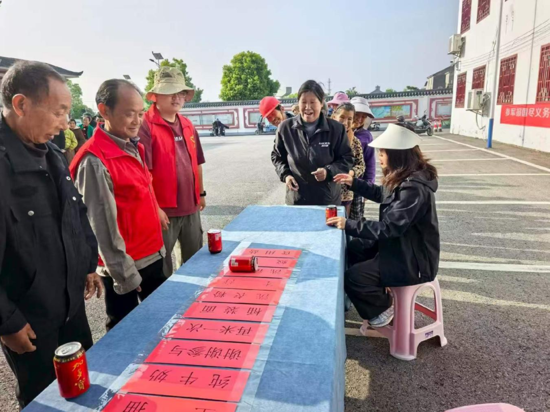 活动现场,村组干部和志愿者全程守在一旁。有的帮老人捡滚偏的瓶子,有的递圈圈时轻声鼓励“再试一次”,有的蹲下来帮老人捡起掉落的零食。主持人时不时提醒“大家慢一点,开心第一”,整个广场没有紧张比赛,只有邻里的说说笑笑和志愿者的暖心陪伴。