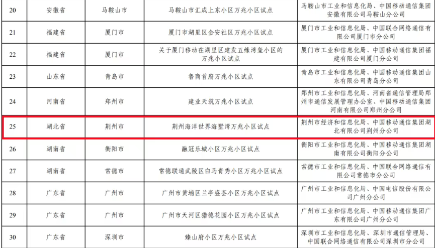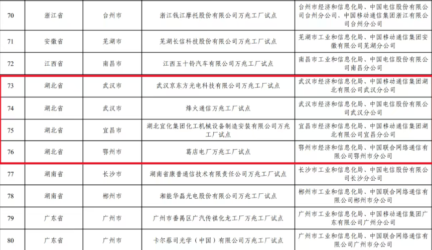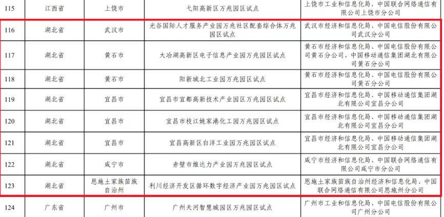 湖北试点项目中,包括荆州海洋世界海墅湾1个万兆小区,武汉京东方光电科技有限公司、葛店电厂等4个万兆工厂,以及光谷国际人才服务产业园万兆社区配套综合体、宜昌高新区白洋工业园、阳新城北工业园等8个万兆园区。