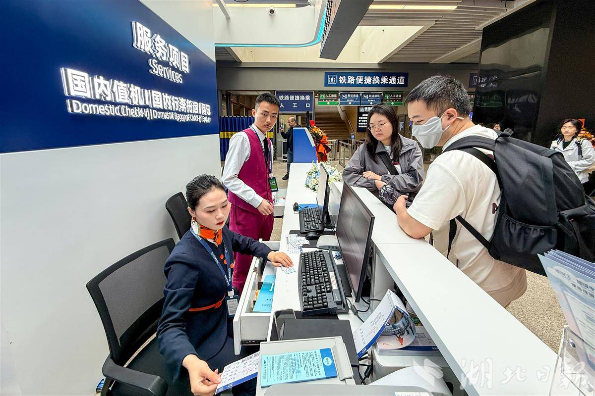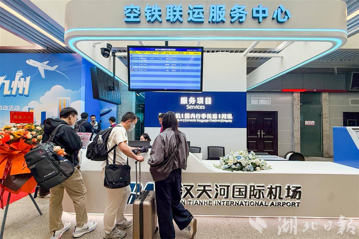 2026年4月28日,汉口站空铁联运服务中心正式投入运营。旅客无需抵达天河机场排队等候,在汉口站即可办理武汉天河国际机场国内航班值机业务、申领登机牌;开通行李全程直挂服务,托运行李可一站直达目的地机场,旅客无需现场提取、二次托运,极大减轻出行负重,高铁换乘飞机衔接顺畅,大幅节省出行时间,极大方便省内外群众出行,全面提升武汉综合交通出行体验。(湖北日报全媒记者 倪娜 摄)