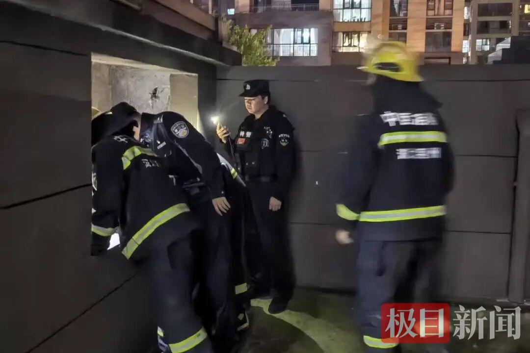 由于男孩坠落点较深,且消防车一时找不到小区入口,民警一边安抚男孩情绪、了解情况,一边通过电话与消防大队说明现场情况,同时指导其行进方向,确保消防车以最快速度赶到现场。