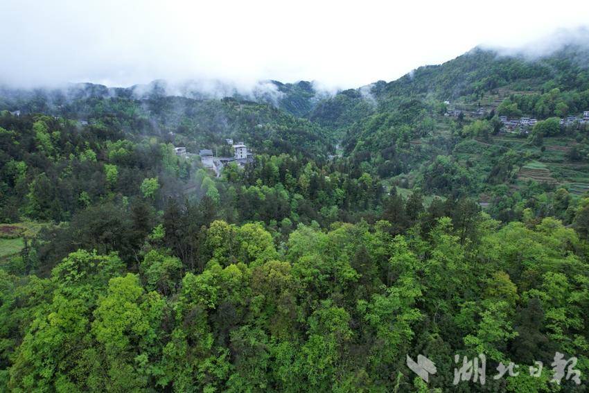 连日来,一场场春雨落下,咸丰层叠的青山被浓烈的春意唤醒,大地被不绝的绿意包裹。航拍镜头下,起伏的群山被薄雾温柔拥抱,深浅错落的林海在云雾中若隐若现,墨绿的苍劲与嫩绿的鲜活交织,每一寸土地都在诉说着春日的生机。